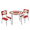 Guidecraft Retro Racers Kids Chairs - Set of 2: Toys & Games. The Retro Racers Table and Chairs Set features brushed metal legs and posts as well as hand-stitched upholstered vinyl for a comfortable and authentic touch. Zippy race cars and a fun retro motif bring ft50s nostalgia to life in the Retro Racers collection from Guidecraft. The chairs even have angled legs to prevent tipping.