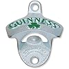 Guinness Cast Iron Bottle Opener - Wall Mounted: Kitchen & Dining. Easy to hang. You'll love this heavy-duty, wall mount bottle opener, with Guinness logo. If there is a better way to open your bottle of Guinness Extra Stout, we have yet to find it! Comes in silver with the Guinness logo in black. In stock and ready to ship. Features: Made out of cast iron. Comes with 2 mounting screws. Officially licensed.