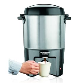 Hamilton Beach 40540 Brew Station 40-Cup Coffee Urn, Silver: Kitchen & Dining. In the BrewStation® urn, a powerful center heater brews the entire tank quickly (45 seconds per cup versus the normal 60 seconds). The Hamilton Beach® BrewStation® 40 Cup urn offers one-hand dispensing, so there is no need to put down a buffet or party plate to fill up a cup of coffee. In a busy buffet line, that means cups can be filled faster, saving time and reducing crowding. Disposable cups are never a problem, either - the dispensing button was designed to work with foam as well as classic ceramic cups. For added convenience, the dispensing area has a higher cup clearance than most urns and the drip tray removes for easy cleaning. The last drops of a 40-cup coffee urn have rarely tasted as good until now. Once brewed, the center heater shuts down and a gentle, keep-warm heater maintains a perfect temperature without scorching the coffee.