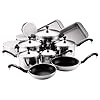 Hampton Forge 52-Piece Kitchen Starter Set: Kitchen & Dining. Blades are designed to endure without needing sharpening and handles are all ergonomically designed for comfort. Ideal for those just starting out in a new home, the 52-piece kitchen starter set includes most of the basics and essentials needed for cooking and entertaining. For food prep, the set includes the following knives and utensils: 8-inch chef's, 8-inch slicer, 8-inch bread, 5-1/4-inch boning, 5-1/4-inch utility, 4-1/2-inch vegetable, 3-inch parer, shears, and a set of twelve 4-1/2-inch steak knives. All of the food prep cutlery and half of the steak knife collection easily stores in an included 14-slot angled wood block for easy countertop reach. A vegetable peeler and 6-by-10-inch cutting board round out the cutlery collection. For cooking and baking, the set includes a 5-piece measuring cup set, 5-piece measuring spoon set, cheese grater, can opener, slotted spoon, solid spoon, small slotted spoon, small solid spoon, pasta fork, fork, ladle, slotted turner, solid turner, large spatula, small spatula, and strainer. Making sure all necessary bases are covered, the set even includes a cork screw, salt and pepper shakers, an ice cream scoop, and a bagel holder. A larger, more comprehensive set is hard to find. Hand wash cutlery for best care.