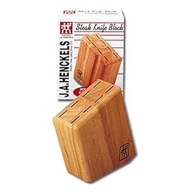 J.A. Henckels 8-Slot Steak Knife Block: Kitchen & Dining. Constructed of top quality wood and slanted for easy access to knives. J.A. Henckels 8-Slot Steak Knife block can accommodate up to 8 of your fine Zwilling J.A. Henckels steak knives. An attractive addition to any countertop in the kitchen.
