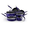 J.A. Henckels International Everedge Plus 17-Piece Knife Set with Block: Kitchen & Dining. --Ann Bieri What's in the Box Cutlery block set. At the inexpensive end of the Henckels International range, the Everedge Plus collection features lightweight cutlery with micro-serrated blades that never need sharpening. Differentiating the Plus collection from regular Everedge knives are the handles: Formed of contoured, almost cushy, santoprene instead of polypropylene, the handles are handsomely backed with brushed stainless steel for added leverage and a sleek, contemporary look. Ideal for a student apartment or vacation rental, this 17-piece set contains the following knives: 2-3/4-inch paring; 5-inch tomato; 5-1/2-inch boning; 6-inch utility; 7-inch santoku; 8-inch chef's; 8-inch bread; 8-inch carving; 8 4-1/2-inch steak knives; and a wooden storage block painted graphite gray. Because of their light weight, the Everedge Plus knives are well-suited to smaller hands and also help reduce tiredness when a large amount of food preparation is required. The molded handles are quite comfortable and resist breakage. While not precision-ground or hand-honed, the stainless-steel blades nevertheless slice and chop with ease, and each features a different serration depending upon its function. All the pieces store in the included block. While the cutlery is dishwasher-safe, washing knives by hand is recommended. A full warranty applies. The set includes: 2-3/4-inch paring; 5-inch tomato; 5-1/2-inch boning; 6-inch utility; 7-inch santoku; 8-inch chef's; 8-inch bread; 8-inch carving; 8 4-1/2-inch steak knives; graphite-painted wooden storage block.