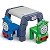Hit Entertainment Thomas The Tank Engine 3 Piece Toddler Furniture Set: Baby. You can create a whole Thomas room setting in these vibrant colors. Thomas the Tank Engine Set includes a sofa, chair and ottoman to create your child's very own room seating. A fun spot for visiting with friends or watching a favorite movie. This set has extra touches for that designer look, such as front arm panels with buttons and 1.5 inch legs. Construction is hard wood frame covered with polyurethane foam and upholstered in soft to the touch, yet durable polyester fabric that is easy to clean with mild soap and water. The sofa measures 26.5W x 15.25L x 17.5H, the chair is 15.5W x 15.25L x 17.5H and the ottoman is 8.5 inch square. The seat height from the floor is approximately 5. There are coordinating furniture items such as a recliner, bean bag and sofa set available to match this cute set. Other items sold separately.