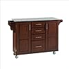 Home Styles 9100-1072 Large Cabinet Kitchen Cart: Furniture & Decor. Finish:Medium Cherry, Top Finish:N/A, Top Material:Stainless Steel Hardware Included Twocabinet doors with adjustable shelf inside Utility drawer Built in spice rack with towel holder on one side Stainless steel towel holder on the other side Heavy duty locking rubber casters.