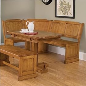 Home Styles Wood Kitchen Dining Nook Corner Bench in Distressed Oak: Furniture & Decor. With cottage design elements, relax in the Home Styles Corner Kitchen Dining Nook Bench. The Home Styles Corner Kitchen Dining Nook Corner Bench is constructed of hardwood solids and veneers in a rich multi-step distressed Oak finish. It features a corner L-shaped design and a slanted backrest for comfort. Features: Dining Nook Bench made of hardwood solids and veneers Distressed Oak finish Corner L-shaped design Cottage style Casual dining Ready to assemble Please Note: This product is for the corner bench only.