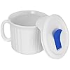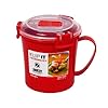Housewares International Large 16-Ounce Ceramic Soup and Beverage Mug with Lid, Red: Kitchen & Dining. Easy to clean and chip-proof. Heat, serve, store and re-heat - all in one dish. This Candy Apple Red glazed ceramic mug can do it all. Beautifully goes from oven to table to refrigerator to microwave - and yes, it can even go in the oven to bake your favorite souffles or french onion soups. Contemporary, modern ribbed design with glazed finishes inside and out for a stunning look that is also functional and versatile. Made of high quality, durable ceramic to ensure flawless temperature consistency. Tight-fitting plastic lid for easy, spill-proof storage and re-heating. Perfect for hot soups, beverages, coffee, hot chocolate, souffles, gazpacho, individual baked desserts, custards, dips and much more. Microwave, oven and dishwasher safe. 16-Ounce capacity.