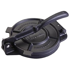 Imusa VICTORIA-85008 Victoria Cast Iron Tortilla Press, 8-Inch: Kitchen & Dining. The long pressing handle is re-inforced at the base. The cast iron, tinned Victoria tortilla press is perfect for making your favorite corn or flour tortillas. It is heavy and sturdy allowing for easy handling when pressing. The unique design allows for various thicknesses of tortillas.