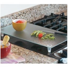 Instant Counter Tempered Glass Cutting Board: Kitchen & Dining. The versatile scratch-proof, bacteria and heat resistant surface is ideal for chopping veggies, prepping and serving food, and resting hot pots. Instant Counter® Glass Cutting Board creates on the spot, functional counter space directly above electric, gas or ceramic range or sink in kitchenswith limited space. Non-skid, 1 3/4 silicone-capped feet keep it steady as you work.