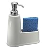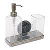 InterDesign Forma 2-Soap and Sponge Caddy, Clear/ Brushed Stainless Steel Accents: Home & Kitchen. A slight press of the stainless steel pump dispenses the liquid in measured doses to prevent wastage. Do you find that a separate soap dispenser, soap dish and scrubby add to the clutter of your kitchen or bathroom counter? In that case, InterDesign’s caddy holder is the answer to reducing the clutter on your counter. The Forma Soap & Sponge Caddy holder brings together the beauty of stainless steel and practicality of plastic to give you the perfect sink side caddy. This three in one caddy organizer is a soap dispenser bottle and a plastic compartment with two sections for a soap bar and a free scrubby. The dispenser bottle and compartment rest on a stainless steel base. Use this caddy organizer as a bath caddy and fill the dispenser bottle with 16 ounces of colorful and sparkly liquid soaps, shampoos or shower gels of your choice for use in your bathroom. Or, use this caddy holder as a kitchen caddy, where the compartment holds a bar of soap in one section and an abrasive sponge in the other, with liquid soap in the dispenser bottle.