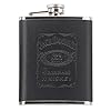 Jack Daniel?s Ribbed Flask: Kitchen & Dining. Leather inset with silver screened print with the Jack Daniel's Simplified Label logo on the front of this flask and ribbed design on the sides.