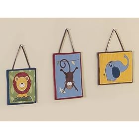 Jungle Time Wall Hanging Accessories by JoJo Designs: Baby. These wall hangings also make great gifts. These adorable wall hangings by JoJo Designs have been created to coordinate with the matching bedding sets. This will complete the look and feel of this adorable bedroom theme for your child. These plush handcrafted wall art hangings are great to add dimension and a splash of color to any bedroom. You will receive a set of 3 wall hangings that are made by JoJo Designs and goes with the matching set perfectly.