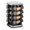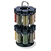 Kamenstein 16-Jar Beechwood Revolving Spice Rack: Kitchen & Dining. Measuring 10-1/2 inches tall and made of natural wood, the rack maintains jars on their side, so it's easy to read the label printed on the cap. This revolving spice rack takes the challenge out of keeping herbs and spices organized. On the countertop or in a tall kitchen cabinet, it holds 16 clear plastic jars prefilled with a variety of seasonings. Each rack comes with a different set of common herbs and spices, such as basil, dill, and parsley, plus unique custom blends, such as pizza, Cajun, and fish seasonings.