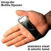 Hands Free Bottle Opener: Kitchen & Dining. Keeps hands free. For all you bartenders in a rush, this bottle opener has an elastic strap that secures it snugly to your hand! This work of genius is a bottle opener that you can't lose. Perfect for busy night clubs or parties. In stock and ready to ship. Features: Strap holds bottle opener in the palm of your hand. The bottle opener you can't lose.