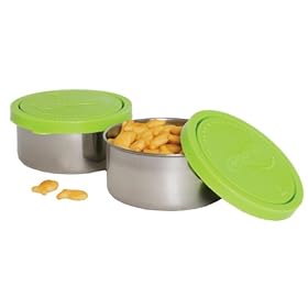 Kids Konserve Set of 2 Leak-Proof Stainless-Steel Food Containers: Kitchen & Dining. The recycled stainless-steel containers are also recyclable, with leak-proof, BPA-free, recyclable plastic lids. This set of two 304 food-grade stainless-steel containers is an ideal solution for packing food to go or storing it in the fridge. Each container measures 4 inches wide by 2 inches deep. The set is tested by a CPSIA accredited testing laboratory to meet FDA requirements and CPSIA standards.