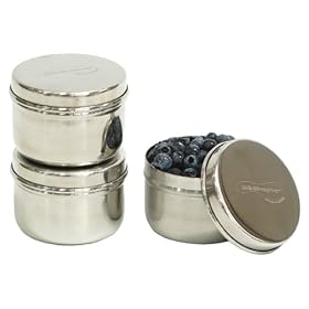 Kids Konserve Stainless Steel Mini Food Containers, Set of 3: Kitchen & Dining. baggies when you are on the run. This perfect size fits more than you'd think!  Ideal for nuts, berries, goldfish, baby carrots, stacked small cookies, hummus and more.  Great alternative to snack sized plastic. Also great for taking vitamins to work or while traveling.