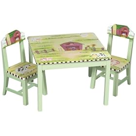 Kids Table and Chair Set - Little Farm House Table and Chair Set - Guidecraft - G83562: Toys & Games. With beautiful animals painted throughout, the table will definitely have your child imagining being on a farm where the barn animals talk. Instead of a simple color painted table and chair, why not spark your child's imagination with this beautiful farmhouse set.