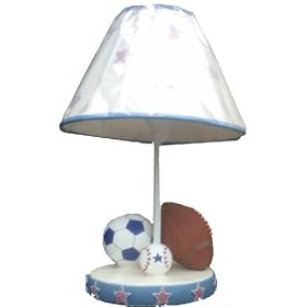 Tiddliwinks Sports Kids Lamp: Home Improvement. Lamp base features a baseball, soccer ball and football. Shade is off-white with red/blue stars on it. 60W bulb max; Bulb not included.