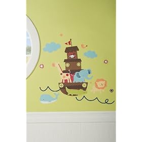 Kidsline Ark Animals Wall Decals: Baby. Create your own ark and animal picture with these easy to install and remove decals with self-stick adhesive that will not harm walls. Easy! Simple! Colorful! These Ark Animals wall decals allow you to quickly and artfully decorate your little one's bedroom. A giraffe, elephant, lion, alligator, monkey and little bird all fit aboard the ark, while a whale gambols below in the sea.