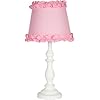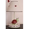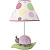 Kidsline Dotty Lamp Base and Shade: Baby. The tasteful pink and white striped shade allows a soft glow to fill the nursery and complements the Dotty Crib collection. You just won't believe how cute this lamp is! A bright rose pink hand resin base and green stem provides a perfect perch for a friendly garden snail and ladybug on this Dotty Lamp Base and Shade. The Lamp Base and Shade measures 16 inch high x 10 inch wide.
