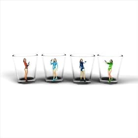 Kikkerland Gun Girl Shot Glasses: Kitchen & Dining. Shot glasses depict images of sexy spies in different poses holding a gun. Line up. Have a shot in these spy girl shot glasses with your friends after a long hard day at work. When not in use, spy girl shot glasses make a great home decor item.