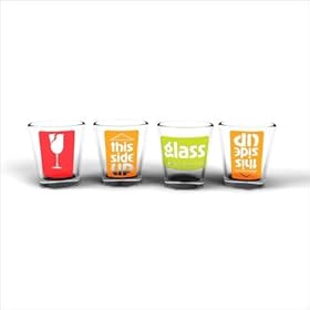 Kikkerland Warning Sign Shot Glasses, Set of 4: Kitchen & Dining. When not in use, shot glasses make a great home decor item. Each glass printed with a colorful warning sign.