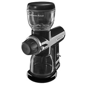 KitchenAid Pro Line Series Burr Coffee Mill, Onyx Black: Kitchen & Dining. Like the famous KitchenAid® Stand Mixer, the PRO LINE™ Series Burr Coffee Mill features performance that can be enjoyed from generation to generation. Designed to the highest standards of commercial performance and reliability, the KitchenAid PRO LINE Series Burr Coffee Mill is your key to making the finest coffee and espresso possible. Two precision, flat cutting burrs will grind your coffee to superb consistency, while the low-noise DC motor and gear reduction system work to minimize the frictional heating of the grinds, maximizing your coffee’s flavor and aroma. The all-metal housing and glass hoppers are not only durable, stylish, and easily cleaned, they help reduce the static “cling” of coffee grinds common with plastic components. The PRO LINE™ Series Burr Coffee Mill has been designed for years of heavy use: the durable stainless steel cutting burrs can be easily adjusted to compensate for wear or replaced if damaged. The KitchenAid® PRO LINE™ Series: commercial quality for the discriminating home chef.