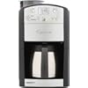 Krups Coffee Maker & Grinder: Kitchen & Dining. An aroma function ensures the proper brewing of small coffee quantities (2 - 4 cups). This coffee maker, with its professional-style conical burr grinder and carefully developed programming, provides precise control of all of the elements for great coffee: coffee quantity and grind, water quantity, and brew time. The coffee maker has a built-in burr grinder; conical burr grinders are recognized as the best method for grinding coffee, as they turn slowly to prevent heating and produce a consistent grind for optimal flavour extraction. The grinder's automatic functionality grinds the coffee beans to match the number of cups and strength chosen. The coffee maker allows you to select from 5 levels of grind and 3 coffee strength settings -- mild, medium, or strong. Simple-to-use programming provides control of the brewing process for 2, 4, 6, 8, or 10 cups. The coffee maker has a high-quality 10 cup glass carafe, a pause-and-serve function with an anti-drip valve, and an illuminated orange LCD clock and display.