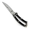 Kuhn Rikon 2710 Ultimate Shears, Black: Kitchen & Dining. The shears feature ultra-sharp blades (which are self-sharpening for long-lasting use) easy-grip handles, a powerful spring action that makes it easy to grip and operate, and integrated herb stripper and bottle opener. Cut through virtually anything in the kitchen--bones, tough stems, stubborn plastic packaging--with this pair of Ultimate Shears in black from Kuhn Rikon, designed by award-winning Swiss designer Philipp Beyeler. These Ultimate Shears ratchet up the power with a serrated lower blade that will also ably handle branches, wire and even carpet. They come with a color-matching plastic protective sheath for safety and storage.