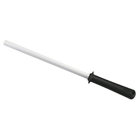 Kyocera CSW-18-BK 9-Inch Ceramic Steel Sharpener: Kitchen & Dining. The material strength of this sharpening rod will provide excellent results when re-sharpening or honing the cutting edge of your metal-based knives, scissors and cutting tools. This super-efficient sharpening rod is made out of advanced ceramic, a material close in hardness to diamond.