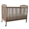 L.A. Baby 15398 Full Folding Crib in Cherry: Baby. -Rolls easily on extra wide swivel casters. L.A. Baby 15398 Features: -Folding full crib. -Sturdy hardwood construction. -Easy storage. -4/4 inch thick hardwood stock on main wooden components to create a durable crib. -Ideal for portable spaces and anyone who doesn't have space to keep a full crib set up all the time. -Easy one time assembly. -Hardware kit includes locking aircraft nuts. -A tool wrench included. -Chrome butterfly hinges used on folding headboards. -Plastic teething rails installed on side rails. -Protective metal ferules used on ends of crib legs. -Single level mattress support panel system for increased safety in a commercial environment.