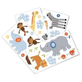 Lambs & Ivy Wall Appliques - S.S. Noah: Baby. They have self-stick adhesive that won't harm walls. Lambs & Ivy Wall Appliques - S.S. NoahContains four 10 inch x 18 inch sheets of various sized stickers. There are 63 stickers in all. The decals are removable and reusable.