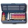 Lansky Universal Sharpening System: Sports & Outdoors. The set includes four hones: medium serrated edge, coarse, medium, and fine; a multi-angle knife clamp; specially formulated honing oil; a molded storage/carrying case; and complete instructions. Ideal for keeping blades of all kinds sharp, this complete sharpening system from Lansky includes all of the tools you need for regular sharpening maintenance of your straight edge, serrated, and scalloped edge blades.