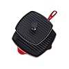 Le Creuset Enameled Cast-Iron 9-Inch Panini Press: Kitchen & Dining. Like other pieces in Le Creuset's line of enameled cast iron, the panini press features a long-lasting enamel exterior that resists chipping and cracking, while its underside provides a satin black enamel--no need to season the cookware in the oven before use. Easily impart authentic grill marks on food--from cafe-style hot sandwiches to paninis and melts--with help from this 9-inch weighted press. The square-shaped press helps trap heat while creating tasty grill marks on the top side of sandwiches. It nicely complements any Le Creuset square-shaped grill, but can also be used with other brands of skillets and pans. As cast iron is unexcelled for even heat distribution and superior heat retention, the panini press helps cook food uniformly and gently without hot spots and can be used for cooking on the stovetop or finishing in the oven.