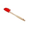 Le Creuset Silicone Small Spatula, Caribbean: Kitchen & Dining. The small spatula measures approximately 10-1/5 by 1-1/2 by 1-1/2 inches. Compact enough to stir inside a smaller saucepan, this small spatula by Le Creuset offers the perfect choice for creating sweet chocolate sauces and savory gravies on the stovetop. The kitchen tool's stain-resistant, non-abrasive Silicone blade can withstand heat up to 482 degrees F (250 degrees C), while its wood handle offers a comfortable grip and comes with a hole at the end for convenient hanging storage. To clean, simply remove the Silicone head and place it in the dishwasher or wash it by hand with warm, soapy water. The wood handle is not dishwasher-safe and should be washed by hand only. Le Creuset's range of durable, functional Silicone spatulas makes a variety of kitchen tasks easy and manageable.