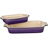 Le Creuset Stoneware 3-Quart Rectangular Casserole, Cassis: Kitchen & Dining. And thanks to its unmatched thermal resistance from -65-degree f to 500-degree f, the dish moves gracefully from the microwave or oven (or under the broiler) to the table for serving to the refrigerator or freezer for storing leftovers. Made from durable stoneware, the cocotte features a hard-wearing, impermeable finish fired at temperatures as high as 2192-degree f. With a porosity level of less than 1 percent, the dish blocks moisture absorption, so there's no chipping, cracking, crazing, or rippling along the interior to worry about. Its non-porous construction also resists odors, scratching, and staining for hygienic use and optimal cooking performance. Even more, its high-quality enamel protects against metal marks and other damage, which means it's safe for cutting on with knives. Best of all, the glaze on the exterior makes the dish fun to mix and match with other coordinating le creuset pieces (sold separately), while a neutral-colored glaze on the inside offers a pleasing contrast and an optimal palette for food presentation. The dish includes a secure-fitting lid with a round-shaped knob to help trap heat and moisture, and its loop side handles facilitate steady transport.