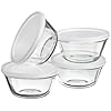 Libbey 6-1/2-Ounce Small Bowl with Plastic Lid, Set of 12: Home & Kitchen. Good for portion control as well. Contemporary styling and design make these glass mini bowls great for the kitchen as well as the table. Each bowl holds 6.5 ounces and comes with a plastic lid. They are excellent for sauces, condiments, puddings or as prep bowls in the kitchen. Glass is dishwasher, microwave, and freezer safe.