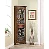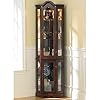 Lighted Corner Curio Cabinet - Mahogany: Home & Kitchen. Additionally, the lower cabinet also contains one adjustable shelf. Display your collectibles with pride in this lighted curio cabinet. Mirrors are present on both back edges to enhance the lighting of your items and give more visual depth. The rich mahogany finish compliments the simple straightforward design with tall vertical panes and decorative arch top. Two adjustable shelves are present in the upper cabinet that can be raised, lowered, or removed to suite your needs. This lighted corner curio is sure to become a cherished piece of furniture in your home.