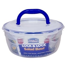 Lock & Lock Round Travel Salad Bowl with Handle and Tray, 21-Cup, 169-Fluid Ounces: Kitchen & Dining. Ideal Fruits, vegetable storage and much more. Most purified container we ever made. Excellent solutions for food storage. The Nestable system of Lock and Lock salad bowl helps to minimize space during storage.