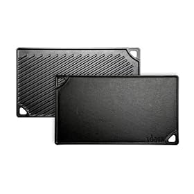 Lodge Double Play Reversible Grill Griddle: Kitchen & Dining. The food sits above the grease making your cooking experience much healthier. What could be better than a reversible griddle? The smooth side is great for making grilled cheese sandwiches as well as eggs, pancakes and french toast. The ribbed side is perfect for grilling foods such as steak, fish, chicken and hamburgers. Seasoned and ready to use.