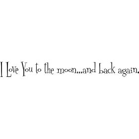 I love you to the moon...and back again wall art wall sayings: Baby. By applying your favorite sayings directly to your walls you will create daily inspiration with a beautiful hand-painted look. Wall sayings and designs are the latest trend in interior decorating and home decor. It is an easy and creative way to add personality and charm to Any Room! Vinyl Lettering is a creative way to transform any room into a stylish, unique space. The graphic is ready to apply and is cut from high quality Avery vinyl film with a outdoor life of 6 yrs and should last for a very long time indoors (25+yrs.).
