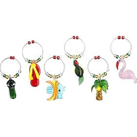LS Arts Set Of 6 Tropical Wine Charms: Kitchen & Dining. Slip one unique charm on each guest's glass for easy identification. This set of six Tropical Wine Charms offers a stylish way help guestsdistinguish their stemware at a party. Each charm features hand crafted, multi-colored glass & metal rings.
