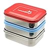 LunchBots Trio Stainless Steel Food Container, Stainless Steel: Kitchen & Dining. Constructed of high-quality 18/8 stainless steel and free from harmful BPA, lead, and phthalates, the snack container sports rounded edges and a tight-fitting lid, with a low profile that fits easily beneath car seats on a road trip or in a picnic basket on the way to the park. A sleek and stylish way to pack on-the-go lunches and snacks, this streamlined snack container makes a smart alternative to cumbersome lunch boxes and the waste caused by disposable brown paper bags. The unit's three-compartment interior creates a simple way to keep finger foods--everything from diced veggies and fruits to cookies, crackers, and other munchies--separated from one another, with varying compartment sizes providing plenty of space for wraps, leftovers, and other lunch dishes as well. Best of all, it offers dishwasher-safe cleanup for low-maintenance use from one school day or workday to the next.