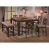 Luxor 7 Piece Dining Table Set in Modern Cherry: Furniture & Decor. Dimensions: -Seat height: 18''. LU500T / LU450S Features: -Contemporary style.-Corner blocked.-Tongue and groove joints.-Black glass inserts.-18'' Extension leaf.-Seats upto six. Includes: -Set includes dining table and six side chairs. Options: -Upholstered in durable Brown vinyl fabric. Construction: -Solid wood construction. Color/Finish: -Modern Cherry finish. Collection: -Luxor collection.