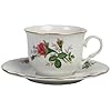 Lynns Clarabelle Cup and Saucer, Set of 6: Kitchen & Dining. Hand wash recommended. Clarabelle cup and saucer, set of 6. Pink roses on a delicately swirled body with gold accented rims. Porcelain. Due to metallic content in the gold trim this item is not suitable for use in a microwave oven.