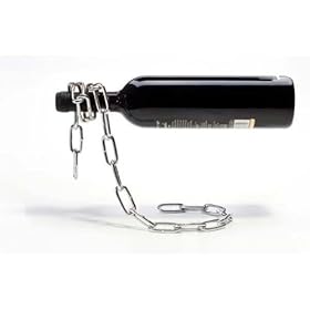 Magic Chain Wine Bottle Holder: Kitchen & Dining. The Magic Chain Wine Bottle Holder 'links' your passion for palatable plonk and quirky fancy furnishings! Why shove your precious bottle of Pinot into a boring old square Wine Bottle Holder when you can display it with pride in the innovatively impressive Magic Chain Wine Bottle Holder! Unique, unconventional and wonderfully contemporary, the Magic Chain Wine Bottle Holder is a piece of modern art in its own right!There'll be no clinking links or rattling chains with the sturdy Magic Chain Wine Bottle Holder as strange as it may sound, all its authentic nickel-plated iron components are solidly bond together to form an optical illusion that'll boggle the mind! Who said drinking was just for down and out leery louts? Pour some class into your glass by serving from the Magic Chain Wine Bottle Holder!.