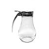 Maple Syrup or Honey Dispenser - 14 oz: Home & Kitchen. Dishwasher safe. This durable syrup dispenser is just like the one you use at your local pancake house or diner. Made of solid glass with a cast zinc lid, this dispenser hold 14-ounces of syrup or honey. The lid has a rubber gasket and thumb-operated, spring-loaded lever mechanism to prevent sticky spills and leakage. This classic syrup dispenser is ideal for commercial or home use. In stock and ready to ship. Features: Made of glass. Cast zinc pour lid with rubber gasket. Specs: Dimensions: 3 1/2W x 5 1/2H (5W with handle).