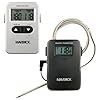 RediCheck Remote Cooking Thermometer: Kitchen & Dining. Composed of two units, both the receiver and transmitter have fold out stands, which also double as belt clips. Designed for accuracy and remote readings, this digital Maverick cooking thermometer can monitor meat temperature in your oven or on your grill up to 100 feet away. The six-inch probe, stainless steel wire and transmitter track temperature and alert you when food has reached your desired doneness. Simply program the digital receiver to your preferred doneness temperature and slip it in your pocket. An alert will sound when food is done, so you don't have to stand around the kitchen waiting for your traditional oven timer to beep. The transmitter and receiver nest together when not in use, and can also be used together if wireless feature not needed.
