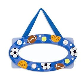 Melissa & Doug Sports Door Plaque: Toys & Games. Framed with balls, bats and rackets, it’s easy to individualize the wooden hanging plaque with the enclosed letter stickers. Treat your little all star to a personalized door plaque.