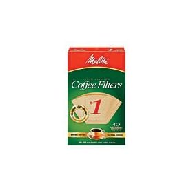 Melitta 620122 40 Count #1 Natural Brown Cone Coffee Filters: Everything Else. Melitta 620122 40 Count #1 Natural Brown Cone Coffee FiltersMelitta 620122 40 Count #1 Natural Brown Cone Coffee Filters Features:; Natural brown paper made from carefully selected unbleached pulp; Special texture - traps bitter tasting oils and sediment for better flavor; Melitta filters hold their shape - won't tear; Melitta filters offer premium quality and higher profits; Natural color; 40 filters per pack; No.