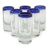 Mexican Glass Tulip Wine Blue Rim: Kitchen & Dining. A cooling-off period is essential after the glassware is removed from the dishwasher. Care instructions: Our Mexican Glassware is individually mouth blown, hand formed and made from recycled glass. Trapped bubbles and slight variations in form, capacity and color are natural and charming features of the glassware. Although it is quite durable, this glass is not tempered so some extra care is necessary. Extreme temperature changes may cause thermal shock and cracking.